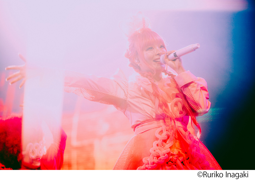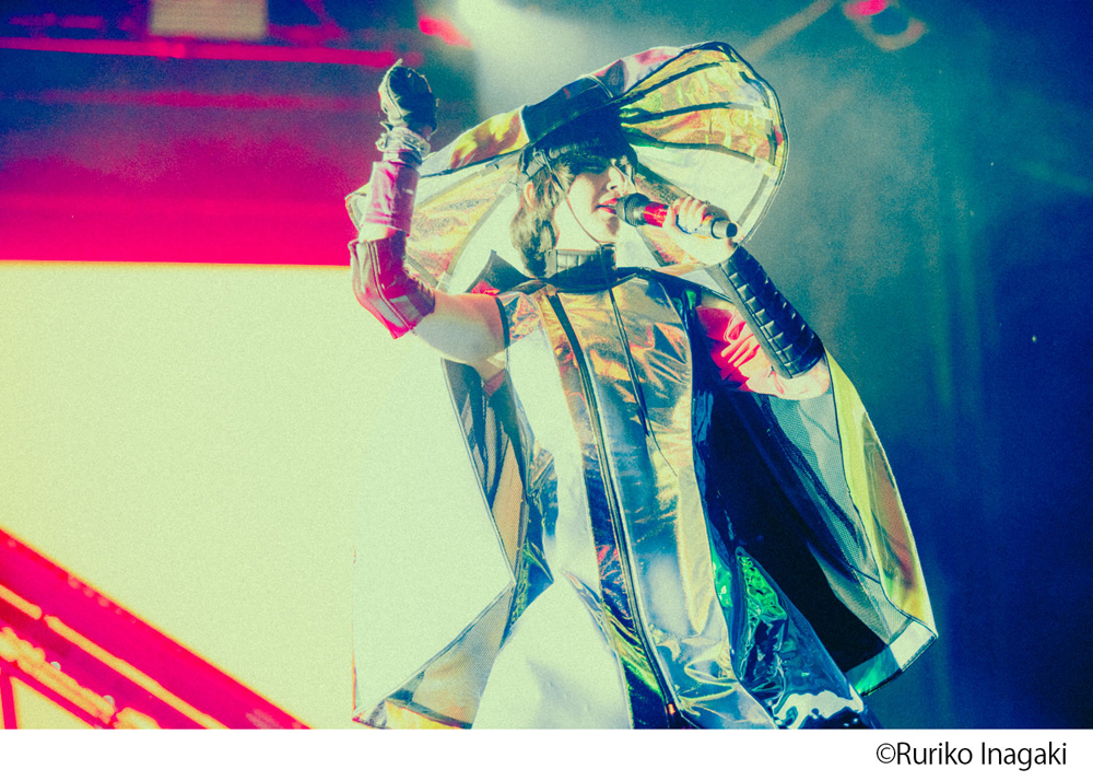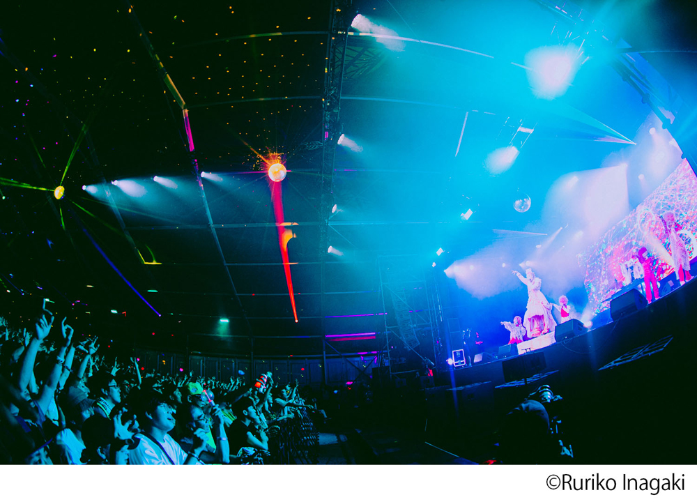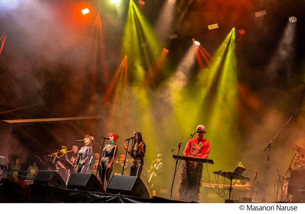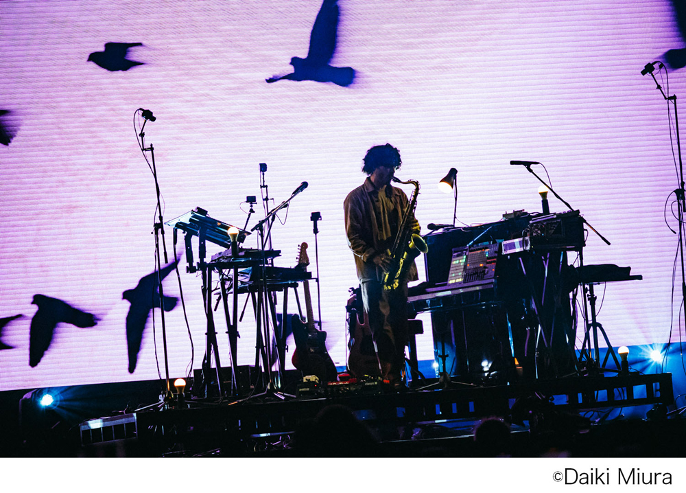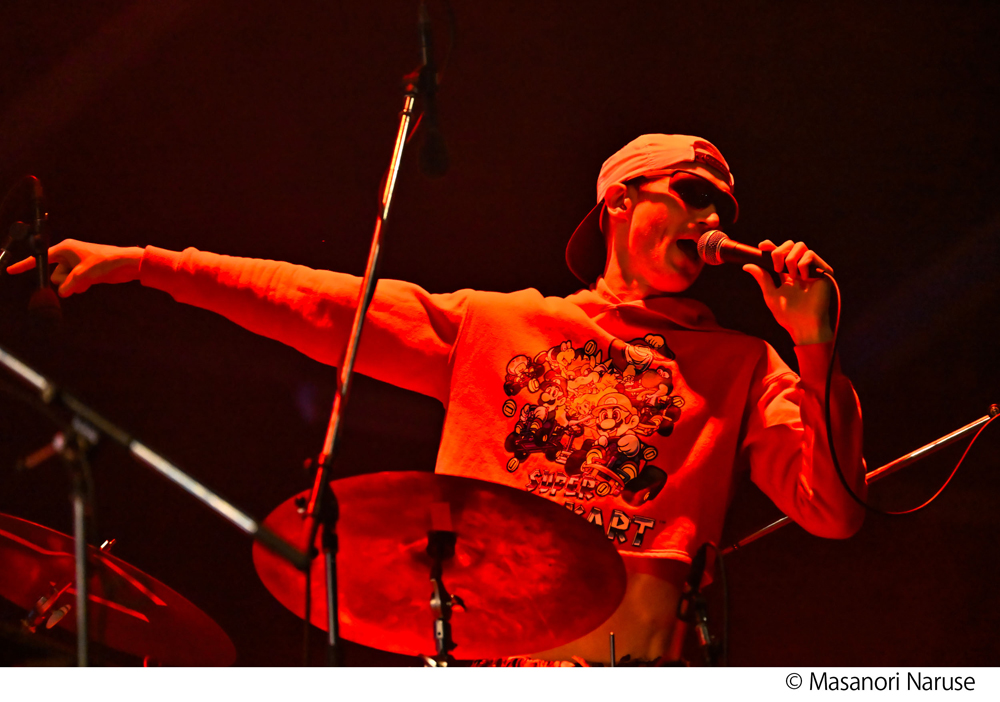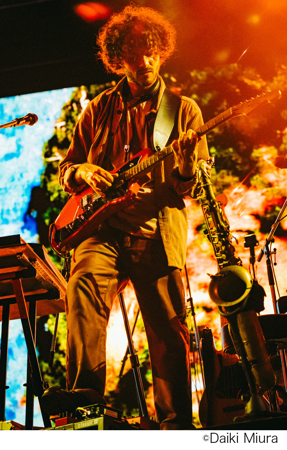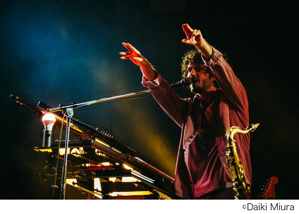 個人的ベストアクトは、WHITE STAGEのルイス・コール。昨年12月の単独公演と同様に太田垣正信(Tb)、MELRAW(As)、武嶋聡(Fl)、陸悠(Bs)、佐瀬悠輔(Tp)、馬場智章(Ts)、TOHO(Tub)といったホーン隊それぞれにソロをとらせたミュージシャンシップや、ノウアーのジェネヴィーヴ・アルターディをはじめとする3人娘によるコーラス、ダンス、馬のお人形に乗っての暴走などのオルタナなエンタメ性があり、それを楽しむルイス・コールはドラムのプレイになると惚れ惚れするほどとてもカッコよかった(マリオがプリントされたパーカーの絶妙な丈感に目を奪われながら)。ステージも自由でDIY精神に溢れていた。だが泣く泣く途中で切り上げてRED MARQUEEに向かったのは、フライング・ロータスが主宰するレーベル〈Brainfeeder〉と契約したばかりの長谷川白紙を観たかったから。複雑な楽曲にもかかわらずラップトップ、鍵盤、歌唱を操り続ける姿に瞳孔が開く思いがして、秒ごとに突然性と調和が襲いかかってくる創造性に溢れたステージに驚愕する。さらにこの日は、GAN-BAN SQUAREで砂原良徳、Q/N/K(QN+N/K a.k.a.菊地成孔)を見るという贅沢な時を過ごして、深夜に無双状態に入った。