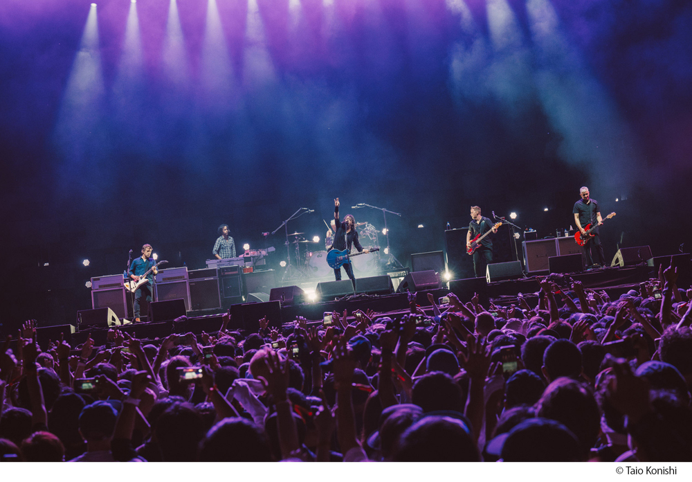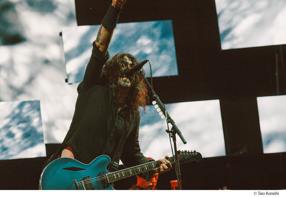 今年のボードウォークは、忌野清志郎、ジョー・ストラマー、アベフトシ、ルー・リードなどフジロックで馴染みのロックスターの名札が森林に掛けられてて、まるで彼らが見守ってくれるようなロックの森と化していたのだが、そこにはテイラー・ホーキンスの名前もあった。二日目のヘッドライナーとして登場したフー・ファイターズは、デイヴ・グロールがいつにも増してエネルギッシュで、観客の歌声もいつにも増して大きかった。さらに、同日出演していたアラニス・モリセットをステージに呼び込み、先日亡くなったシネイド・オコナーの楽曲のカバーも演奏された。