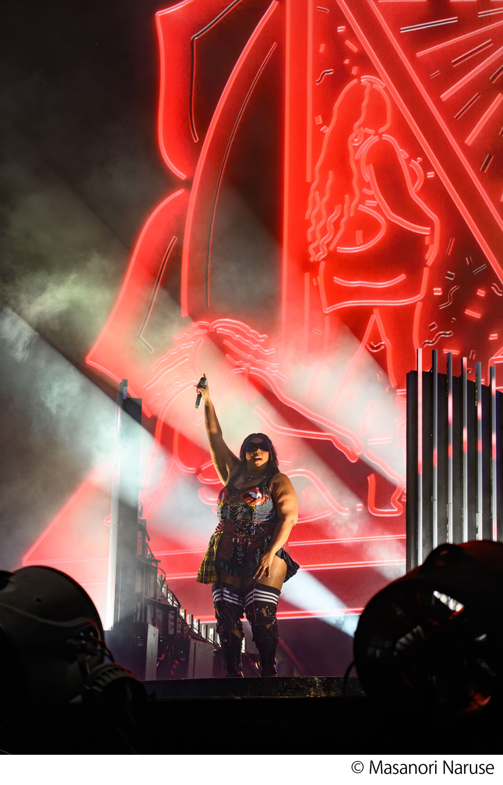 通しの参加者にとっては、3日間の疲労も吹っ飛んだのが最終日に大トリを飾ったリゾのステージ。低音も高音も本当に自在に歌い操る歌唱力、ダンスしたりフルートを吹いた直後も全く息切れしない脅威の肺活量、そして「You are special、Nippon!」と呼びかけるなど、すべての人をエンパワーする彼女のライブを体験すればきっと誰もがポジティブになってしまったすごい1時間強。ステージは20分ほど押して始まったが、そんなのも吹っ飛んだのは言うまでもない。ファンへのサインタイムも挟みながら、最後の曲「About Damn Time」まで一瞬たりともダレることのないグラミーアーティストによる現代のエンターテイメントの最高峰を観た。