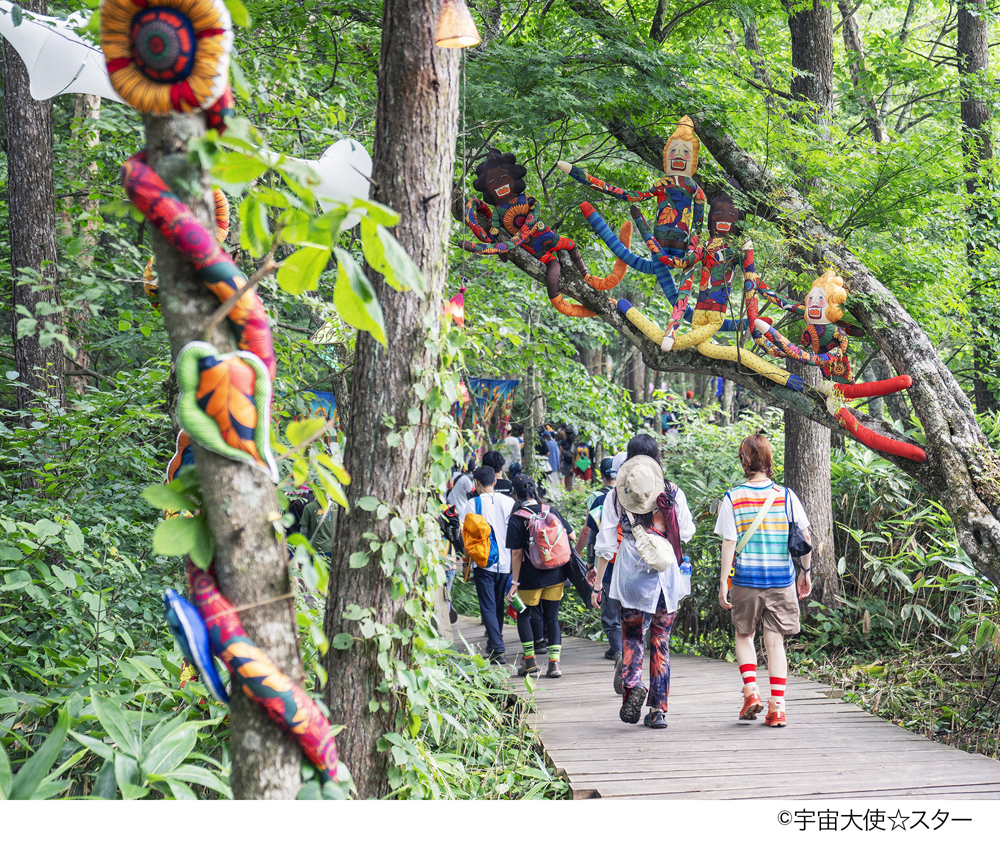 ステージ以外にたくさんの楽しみがあるのも、フジロックが音楽イベントとは一線を画す音楽フェスティバルであることを象徴している。廃校となった地元・三国小学校の古いピアノが、誰でも弾けるストリートピアノとして木道亭に復活した「森のピアノ」は実にいい雰囲気で、原田郁子やTAIHEI(Suchmos/賽)らアーティストによる特別ステージも行われた。