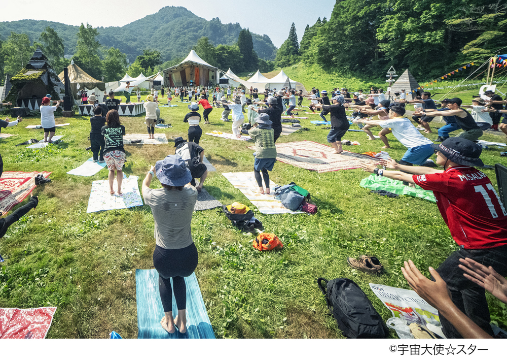また今年は苗場でも記録的な暑さが続いたため、場内に流れる川も大人気スポットとなった。人々は水の冷たさに癒され、石を積み続ける子供を見守る母親の優しい眼差しがあり、ゆったり水面を眺め続けるいろんな国の人の姿があり、そんな自然のもとでは多様性という言葉の存在自体も陳腐に思えた。