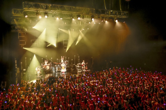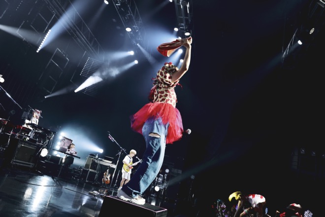 「ここからはみんなでいっぱい歌ってワイワイするコーナーなんですけど、元気余ってますか?」という呼びかけから、「死ぬこと以外かすり傷」でヒートアップ。タオルを回したり手を上げたり大合唱したりと、観客は思いのままに楽しむ。さらに「みんなまだまだ行ける? この街が大好き!トーキョー!」と煽りインディーズ時代の楽曲「トーキョー」で畳み掛け、アッパーチューン「SPARK!!」で盛り上がりは最高潮に。「真っ赤な爪と牛乳」では、観客のペンライトでフロアが赤く染まった。