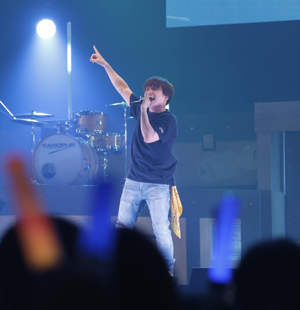 それぞれの情報に触れながら今回のツアーの総括へ。「アーティスト活動5周年を迎えて、6年目になりました。声優としてデビューしてからも10年を迎えました。自分の人生、とても運が良いと思っていて。たくさんの素敵な人に巡り会えたのが自分にとって一番恵まれていたことだなと感じます。デビューした頃はコロナの影響もなかったのですが、段々とみなさんと音楽を一緒に楽しむ機会が少なくなることもありました。でも、一人ひとりが、みんなと同じ熱を、楽しさを共有できる時間を作ってくださったのでこの場が実現しています。みんなと歩いてきたからこの景色が見えているなと実感しています。本当にありがとうございます。この感謝の気持ちを込めてこの曲を届けたいと思います。」と今回のツアーへの想いとファンへの感謝を口にし、自身のデビューシングル曲「NEW WORLD」、そしてファンとのシンガロングの一体感が心地よい「風でありたい」を力強く歌い上げた。