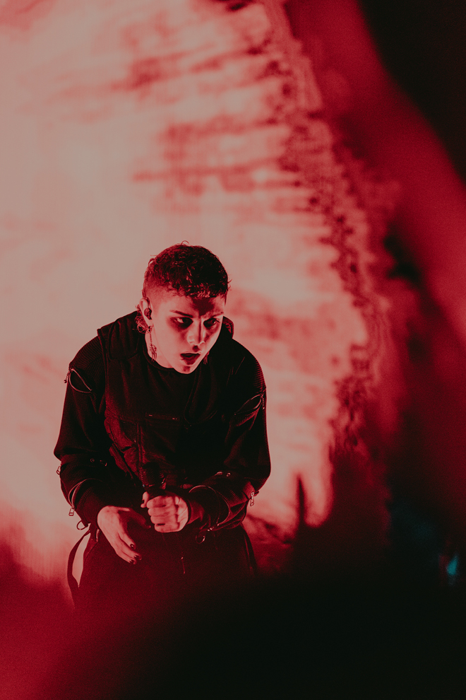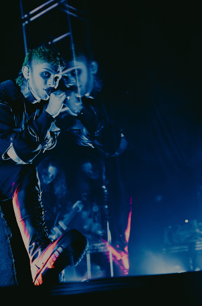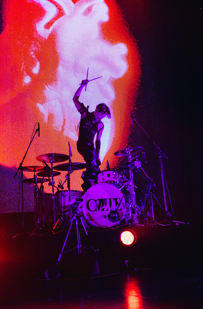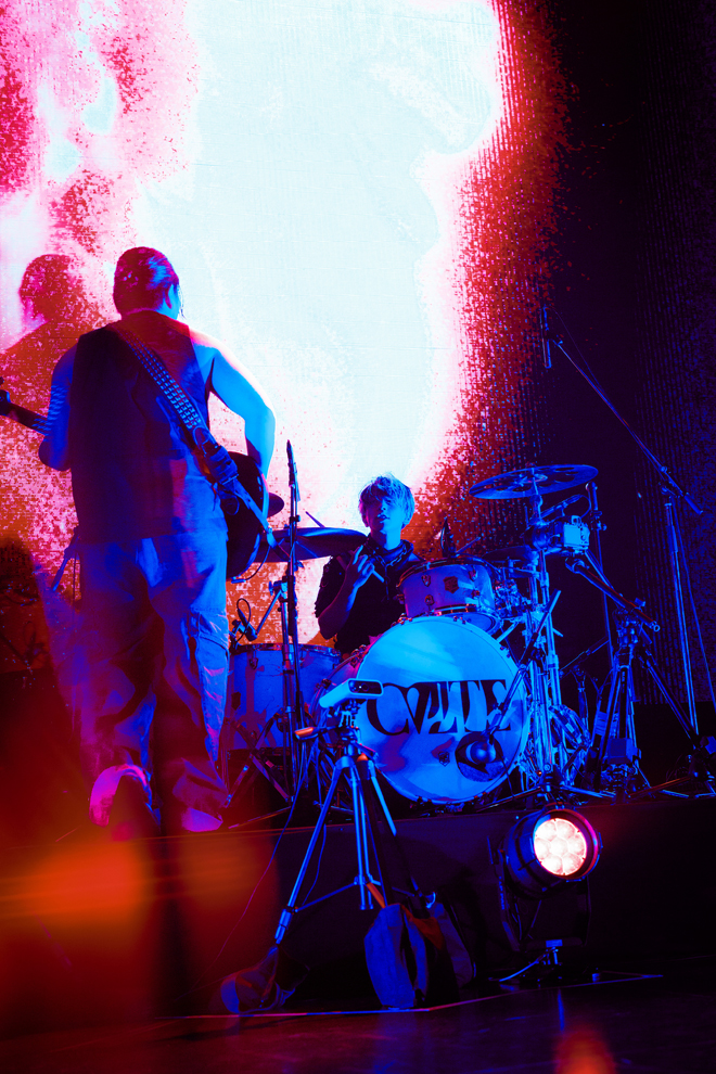 ライブ中盤は、CVLTEのサウンドレンジの幅広さを体感できるひとときに。どこか祈りを捧げるように、心の弱い部分を開いた6曲目「opium.」はバラードに近い雰囲気で。そこから、ラテン〜レゲトンビートも取り入れた「needed you.」、Takuya(Gt.)がポップステイストなギターカッティングを見せる珍しいスタイルで、スムースな印象のキーボードと、その表情にあわせてボーカルも柔らかに微笑むようだったのが「hedonist.」。さらには、細かなハイハットが際立つトラップチューン「paradise.」まで、ヒップホップ、ポストハードコアなどを行き来する楽曲が並んでいた。