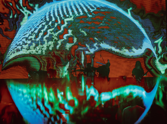 開幕を飾ったのは、8月4日に発表したばかりの新曲「scorpion.」。これから鼓膜と網膜に飛び込んでくる2052年の音楽体験の凄まじさをプロローグ的に予感させるかのように、サイケデリックなサウンドと、CVLTEの特徴である逞しい音圧が襲いかかってくる。