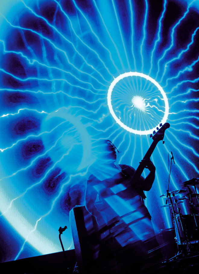 メンバー登場前、ステージ後方にあるLEDに、タブレットを模したような怪しげなキャラクターの映像が投影される。Scorpy Jr.と名乗るそのキャラクターは、自身のモチーフである小さなタブレット=SCORPIONを摂取すると、視覚・聴覚ともに活性化を促し、自らのやってきた2052年の未来とリンクさせてくれると解説。「たしか会場に入るときに怪しげな白いタブレットを手渡されたな……」と、半信半疑の面持ちで、SCORPIONを掌にのせ、映像に誘われるままに一気に飲み込む会場一同。いよいよライブの幕開けだ。