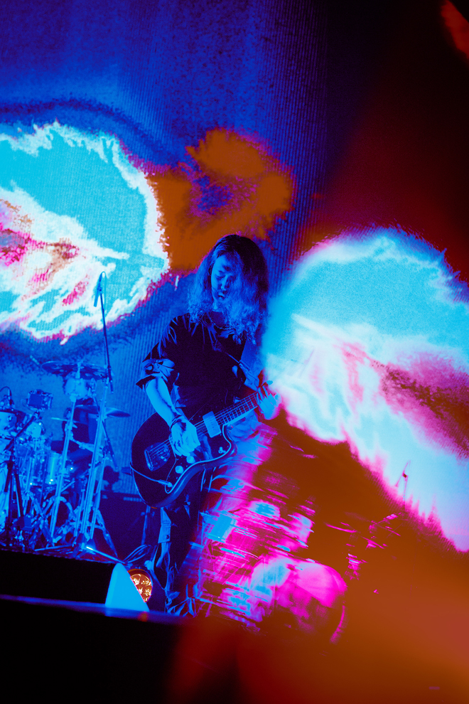 その言葉通り、最初に披露した「scorpion.」から終演までのなんと75分間、途中に何度か、1分間にも満たない短いSEを挟む時間こそあれど、MCやアンコールは当たり前のように、文字通り息つく間すらなくぶっ通しのパフォーマンスを見せつけられた。自分たちが用意してきた世界をぶつけ、フロアにそれを受け止めてもらう。avielの言葉は、これまで開催してきたライブとはコンセプトが大きく異なると示すようでもあり、同時に75分間の連続パフォーマンスに耐え抜くバンドの集中力、精神力、スタミナのすべてにも感服させられてしまった。