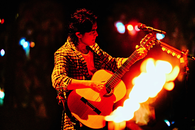 「今回のライブの、もう一つのテーマ。この歌を3日ともやりたいなと思って」と披露したのは、「クスノキ」。先のVTRにも映し出されていた、福山が数年前から取り組んでいる、長崎県に現存する被爆樹木を保全するクスノキプロジェクトの出発点にもなった楽曲である。床面LEDには樹の葉の影が映し出され、唱歌を思わせる美しい日本語で綴られた歌詞は心に染み渡る。《葉音で歌う 生命の叫びを》という一節が示す、命の逞しさ。緑色に輝く光の柱と、その間で浮遊する木の葉のような、あるいは彷徨う魂のような光の粒の下、福山はこの8月、この場所にふさわしいメッセージを歌に宿して届けていた。