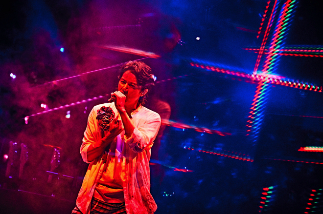 アンコール1曲目は、コロナ禍で生まれ、3年を掛けて今やファンとの絆を象徴するアンセムとして育まれた「光」を披露。呼吸の合ったクラップに加えて、終盤は初めての合唱が叶った。映画版ガリレオ最新作『沈黙のパレード』主題歌「ヒトツボシ」は、ミラーボールが天井に眩い星空を生み出し、作品で描かれていた、遺された者へ注ぐ死者からの眼差しを体感することができた。8月のお盆時期であることともシンクロし、生と死を見つめ、その時々の想いを歌に描き込んできた福山の、言霊に向き合う姿勢に想いを馳せるひと時でもあった。