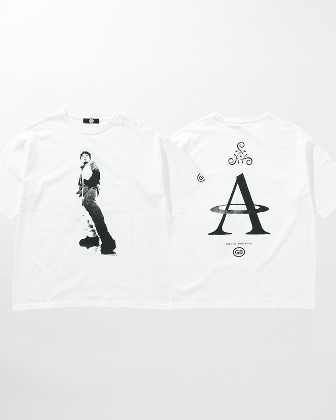 1995年に雑誌の撮影で使用されたモノクロ写真をピックさせていただきました。フォトグラファーはロックカメラマンの草分けとして数多くのアーティストのステージ写真を手掛けられ2001年に発売されたフミヤさん写真集「FlightF」も撮影された三浦憲治氏。新進気鋭のドメスティックブランド「@circleheritage_official」にグラフィックデザイン依頼したTシャツです。