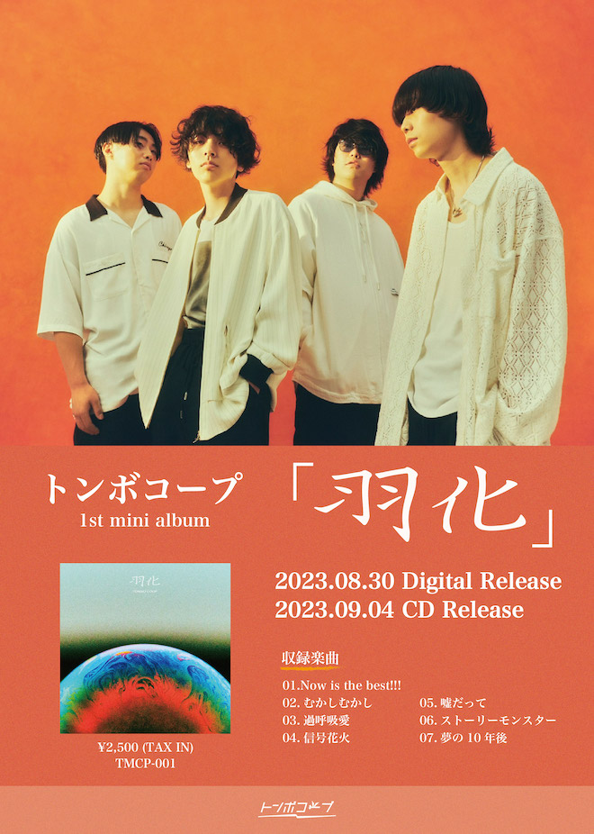 トンボコープが1stミニアルバム『羽化』を8月30日に配信リリースする。9月4日には、一部店舗にてCD販売が開始となる。