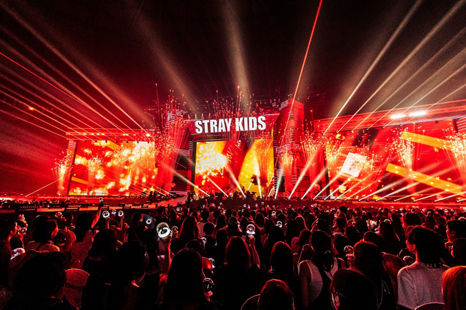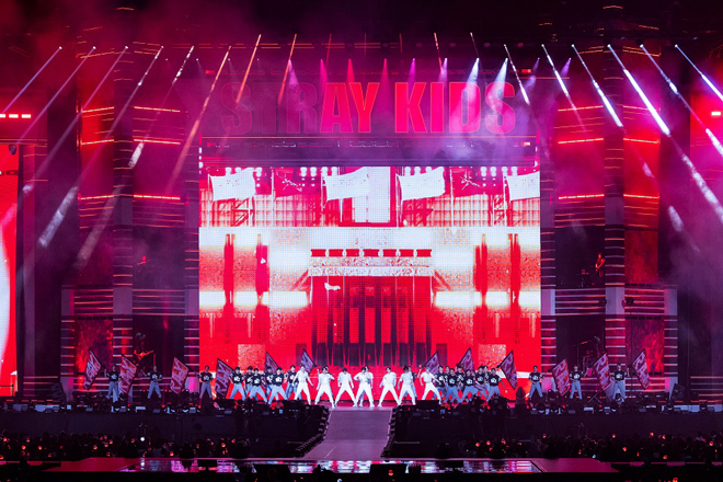 圧巻のステージセットが迎える超満員の会場に、Stray Kidsメンバーが登場。割れんばかりの歓声の中、Stray Kidsは代表曲「MIROH」や、3作連続となる米ビルボード1位を記録したアルバム『★★★★★ (5-STAR)』のリード曲「S-Class」などをパフォーマンスした。初パフォーマンスとなる楽曲や、サプライズだらけのド迫力な演出に、会場は凄まじい熱気に包まれた。