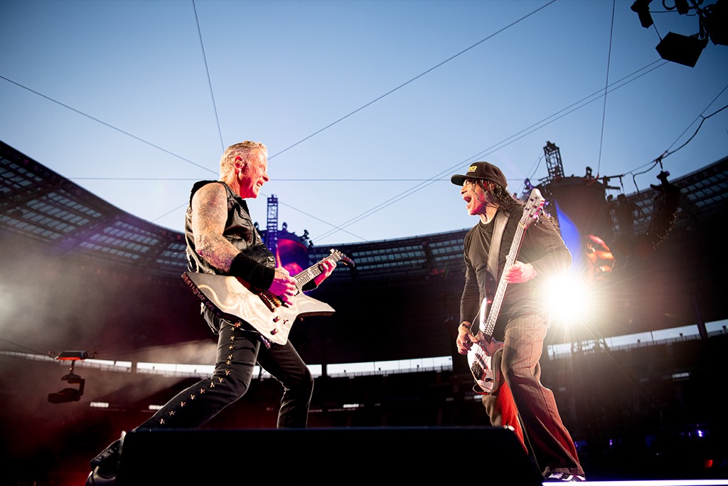 そして重要なのは、この機会が一夜だけでは終わらないということだ。今回のツアーにおいては、原則的に金曜日と日曜日の夜に各地で公演が行なわれている。そして2夜を通じて演奏曲の重複が一切ないことが大きな特徴となっている。つまりこの日に演奏された楽曲は、現地時間の20日に行なわれる同会場での公演では披露されないというわけだ。そんなことが可能なのは、いまや40年を超える歴史を持つメタリカの代表曲の多さゆえでもあるわけだが、実際、この日の公演では「One」も「Enter Sandman」もプレイされていない。最新作『72 Seasons』からは3曲が演奏されていたが、次回の公演では違う楽曲たちが組み込まれることになる。ただ、そうしたコンセプト実践を優先しようとすると、奇を衒った選曲になり兼ねないところがあるようにも思われるが、そうした印象は皆無だった。むしろオーディエンスの求める曲を完全網羅しようとすると2時間のライヴ1本では時間的に到底足りず、しかもこうした約束事に基づきながら構成していくことで、思いがけない曲が登場する機会が出てきやすくなる。そうした意味において、今回の「1曲も演奏曲目が被らない2夜公演」という発想は理に適っているのだと思う。