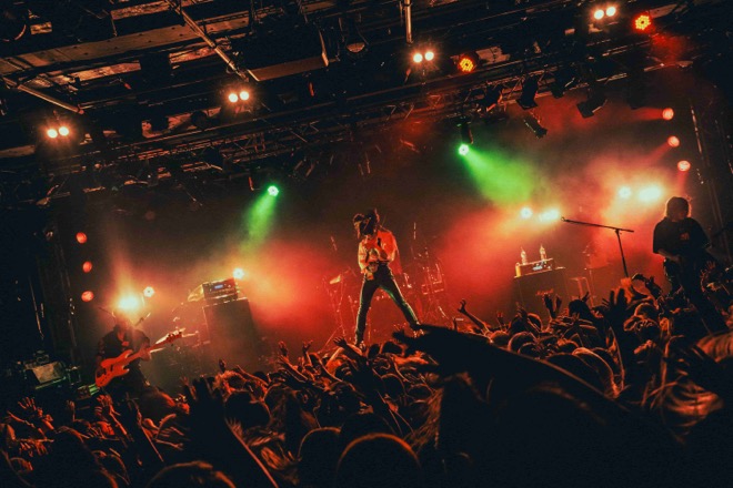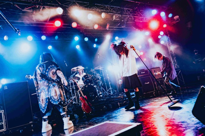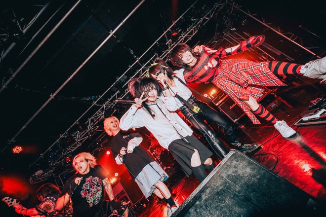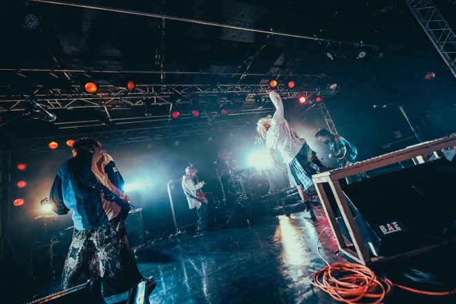 この新喜劇を思わせるような素晴らしき茶番から始まったのは、観客側からの“使えねぇコール”が発される中でプレイされていくことになった「使えね。」。また、これに続いた「頭がハッピーちゃん」もどちらかと言えばネタ要素の滲む面白いものとして感じられたが、一転しての凶悪なヘヴィサウンドが響いた「ミナゴロシ」では彼らのカッコ良い部分が存分に発揮されていたほか、咲の繊細なヴォーカリゼイションが映えた「噛み痕」ではセンチメンタルな甘い旋律が観衆をじわじわと魅了。正味なところ、このバンドはやり口が相当ズルい(無論これは褒め言葉!)。