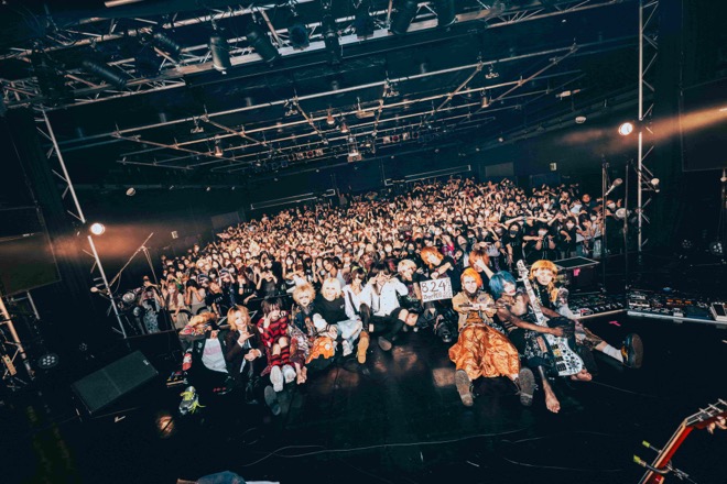 ここで選曲されていたのは、その不穏なタイトルに反してこれまでもセッションの際によく重用されてきた「「殺意」」。各バンドのヴォーカリストが全員マイクを持ち、楽器隊メンバーたちまでもが仲睦まじく入り乱れる光景からはむしろ殺意など微塵も感じられず、至って友好的な尊いひとときが育まれていったことは言うまでもない。結果、気付けば時間は終了予定時刻を40分以上も過ぎた22時の少し前。