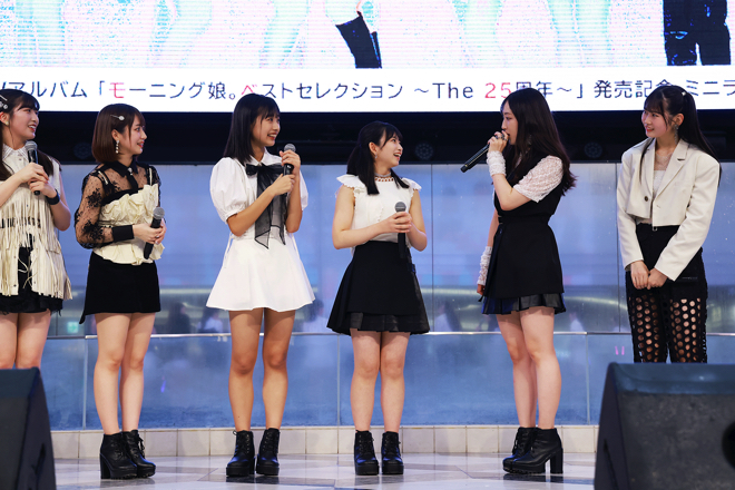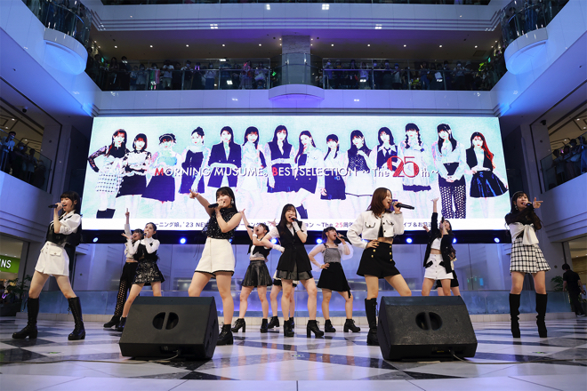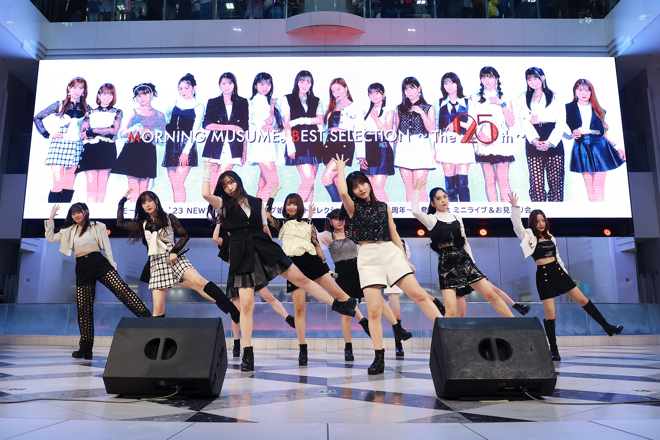 モーニング娘。’23が8月23日、ニューアルバム『モーニング娘。ベストセレクション ~The 25周年~』の発売記念イベントを東京・サンシャインシティ 噴水広場で開催した。そのオフィシャルレポートをお届けする。