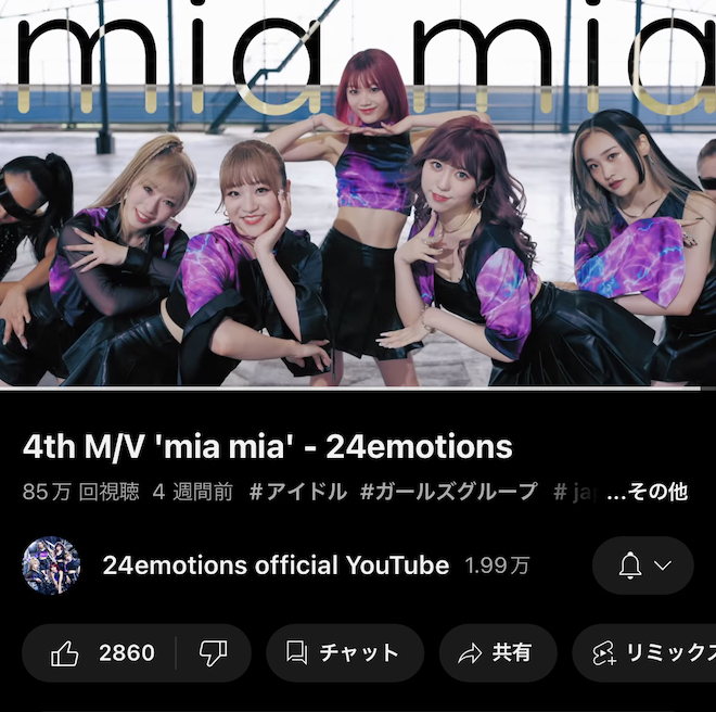 前回のコラムでもあった通り、MV撮影前日に“解散通告”をされた私たち。そんなこの上ない緊張感の中で撮影に臨んだ4thシングル「mia mia」は、結果的にMV再生回数は、私がいま書いてる時点で85万回を達成した。
