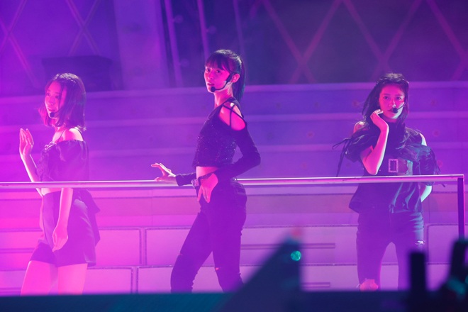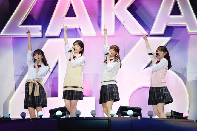 メンバー個々の技量の高さが際立つダンストラックを経て、ライブもいよいよ佳境へ。遠藤の熱のこもったダンスが印象的な「ごめんねFingers crossed」、中西アルノが力強い歌声で観る者を惹きつける「Actually…」、与田&岩本蓮加のダブルセンターで華やかさを演出する「逃げ水」と、クールかつ幻想的な世界が展開されていく。さらに、5期生曲「バンドエイド剥がすような別れ方」、4期生曲「I see…」をメンバー全員で多幸感いっぱいにパフォーマンスすると、3期生曲「僕が手を叩く方へ」では会場中がハンドクラップでひとつになり最高潮を迎える。
