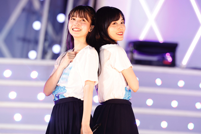 最初のMCではキャプテンの梅澤美波を中心に、メンバーがこの日のライブへの意気込みを口にしていく。遠藤さくらが「ツアーの集大成なので、みんなで最後まで支え合っていきたいと思います」、金川紗耶が「私も応援してもらえて頑張れているので、このあとも1曲1曲感謝を伝えながら披露していけたらと思います」と頼もしい言葉が述べる一方、与田祐希は「ジコチューで行こう!」の間奏で遠藤から頬にキスしてもらえたことを報告し、「これでパワーがめちゃめちゃ湧いてきているので、どんどんテンションを上げて今日も頑張りたいと思います!」と笑みを浮かべた。