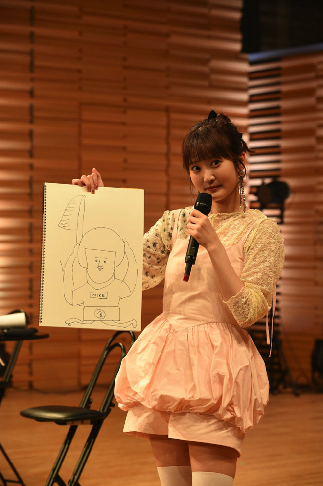 楽曲に関するトークに続いては、企画コーナーが行われた。1つ目に行われたのは、独特の画才の久保ユリカがイラストを描き、そのお題がなにかをBKBが当てるというもの。昼の部のお題は「象に乗る久保ユリカ」と「団子を食べるBKB」。夜の部は「おしゃれに目覚めた金太郎」「お金を数える聖徳太子」となっており、昼の部は2問とも不正解だったが、夜の部では2問目の「お金を数える聖徳太子」をBKBが的中させた。