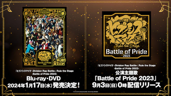 ヒプノシスマイク舞台化最新公演『ヒプノシスマイク-Division Rap Battle-』Rule the Stage -Battle of Pride 2023-(以下、『-Battle of Pride 2023-』)のBlu-ray & DVDが、2024年1月17日に発売されることが決定した。