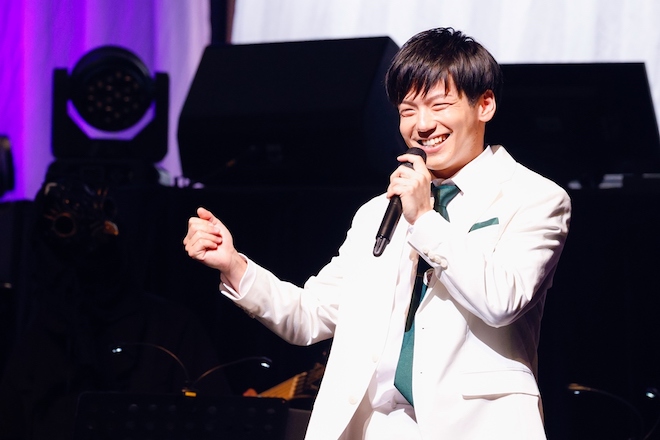 1つ目の議案は、「反発」。細田を進行に据えて、「“反発”を退けてでも『カリスマ』でやってみたいこと」を議論した。カリスマたちにとっては夢のあるテーマに思えるが……橋詰は「絶叫マシン、もらすまで」、福原は「真冬に滝行」と、なぜかしんどいチャレンジ企画ばかりが挙がる流れに。細田は、「なんかみんな攻めてない?」と、たびたび狼狽えた。しかも、これらのチャレンジを細田一人でやることがなんとなく決定。どのチャレンジを選ぶかも本人が選ぶことになり、たまらず「ふざけんな! 全部NOだ!」と反発! そのまま「LONE WOLF」(※ワンコーラスのみ)と、「ツッパれ!生涯反発」を披露した。「ツッパれ〜」は、ダンサーとのシンクロダンスもたっぷりと。慧を演じる細田の力強いがなり声が、広い会場に響き渡り、観客の歓声や5人の生コーラスと共鳴した。