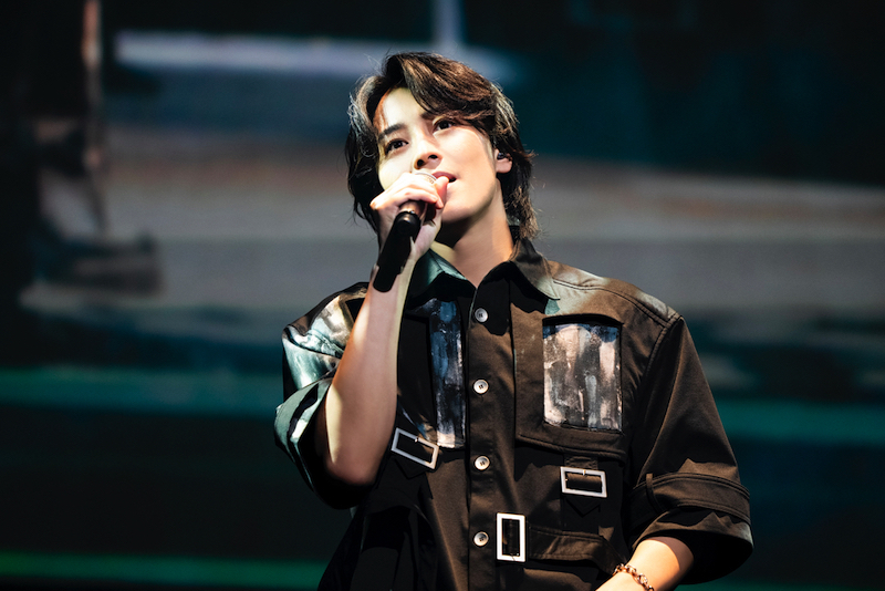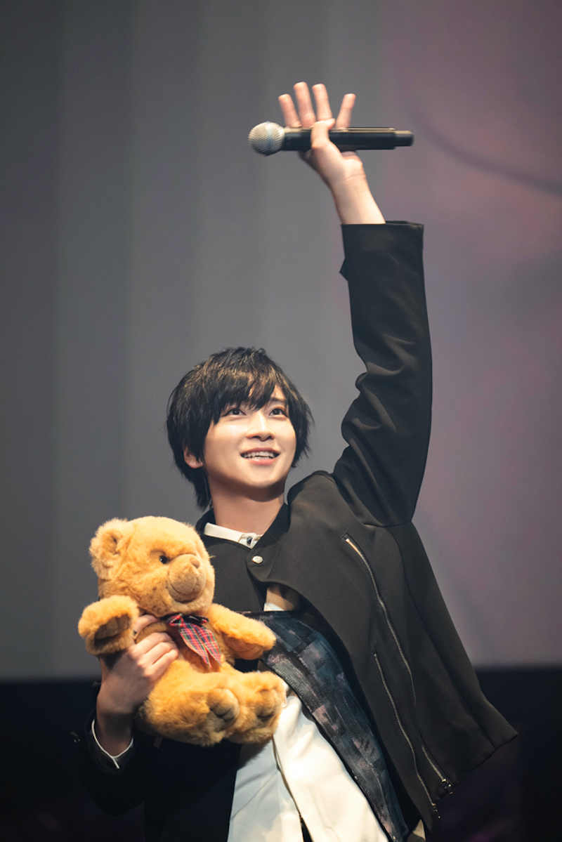 黎士郎(松村龍之介)が80’sの洋楽テイストを感じさせる「Lock on」を決めると、翔琉(佐藤流司)が「again…」を歌い上げ、さらに「Toxic Liar」とメドレーで繋げ、会場はヒートアップ。征行(和田雅成)がしっとりと「The one」を聞かせると、凪沙が登場し、「Your Smile」。椅子には、おなじみのクマのぬいぐるみ・マーサが鎮座し、一緒にパフォーマンスする。