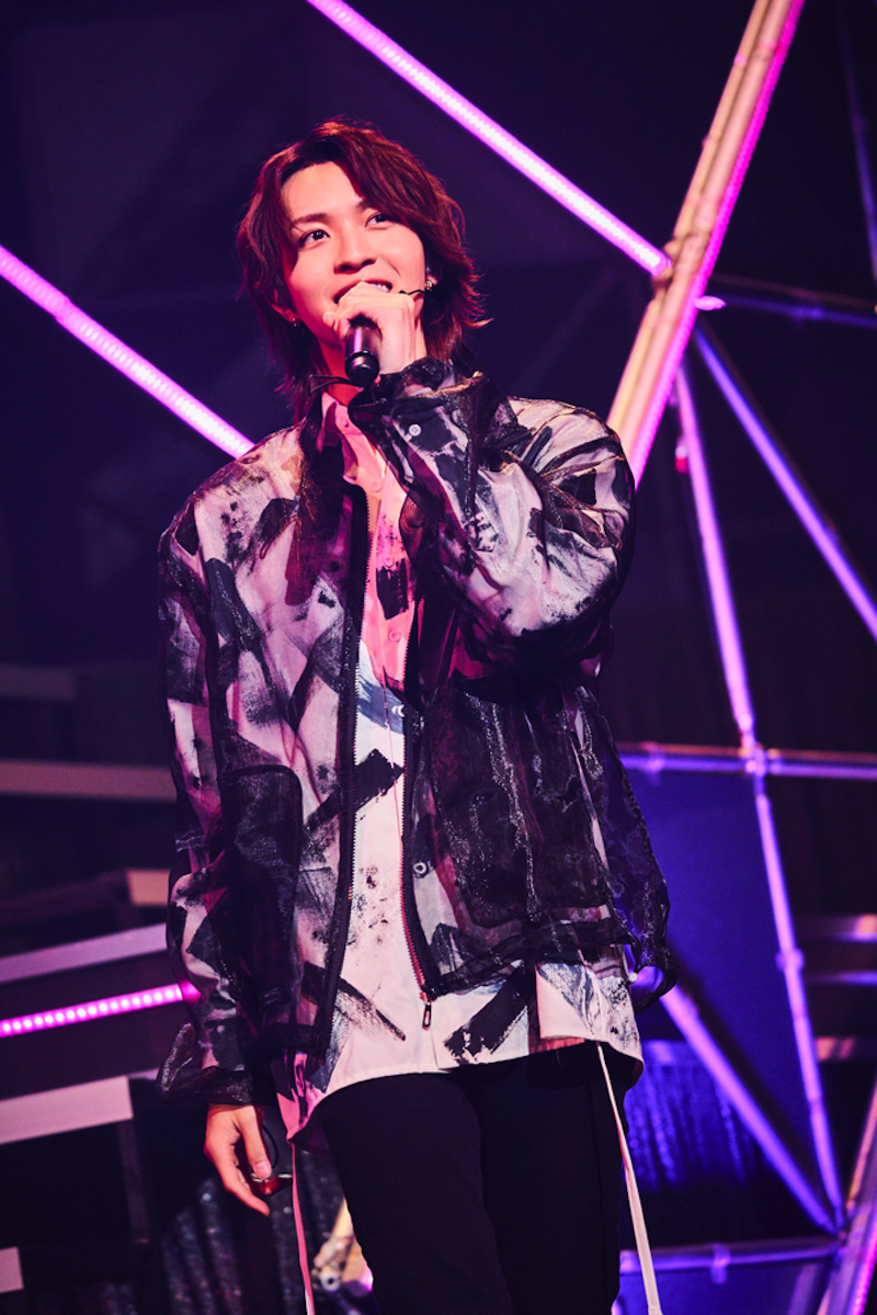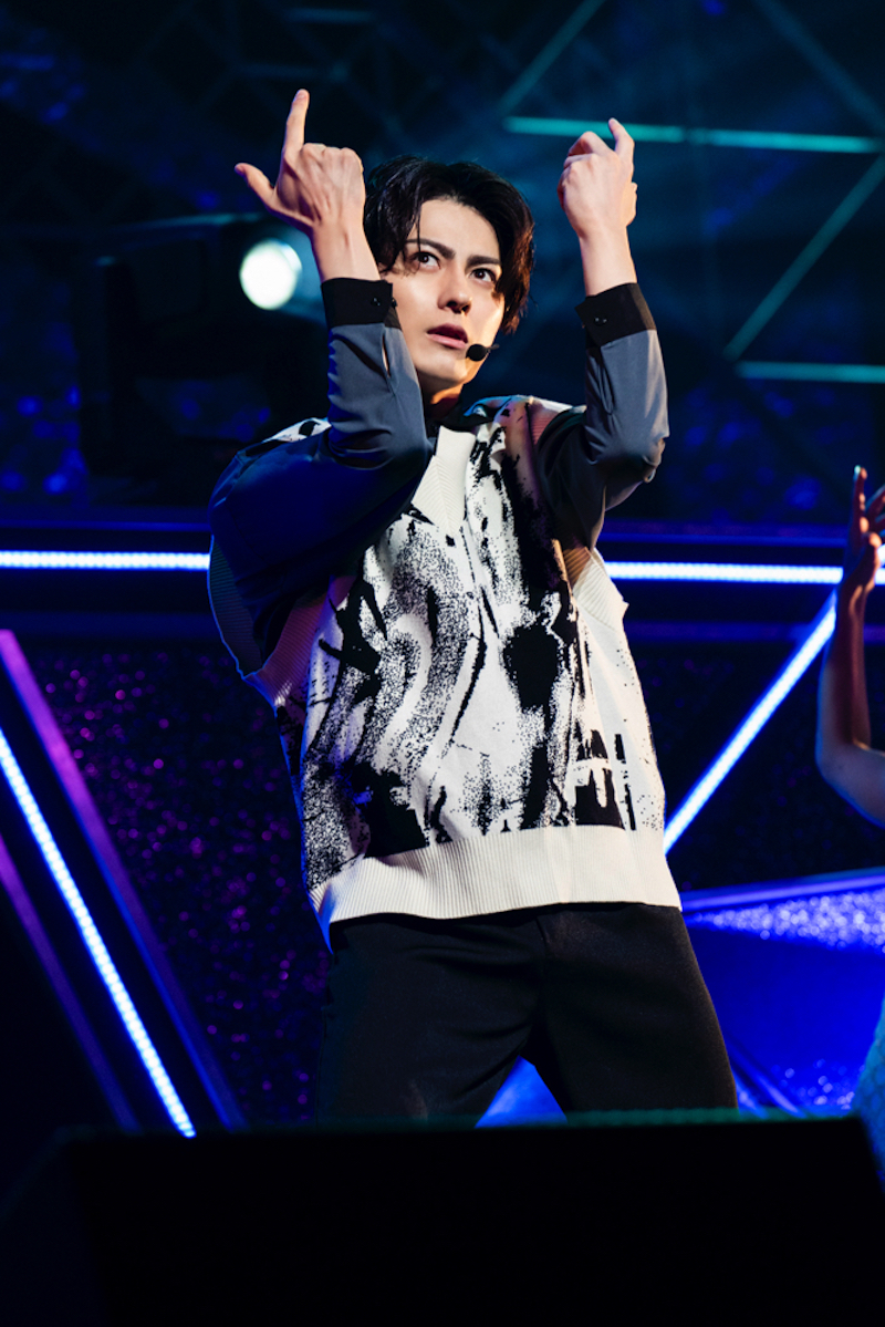 そしてここからはソロコーナーに。まずは朱音(蒼井翔太)の「SHELTER」から。サビではペンライトでSの字を書いてほしいという朱音の願いに合わせ、客席のペンライトが揺れる。悠輔(植田圭輔)がチルなポップス「through the wind」を歌い上げ、守屋と朱音のVTRが挟まれる。マゼンタのライトの中、弥月(笹森裕貴)は甘いラブソング「Honey」を披露し、紘希(猪野広樹)の「Powdersnow」と続く。ミラーボールの光がまるで雪のようだ。