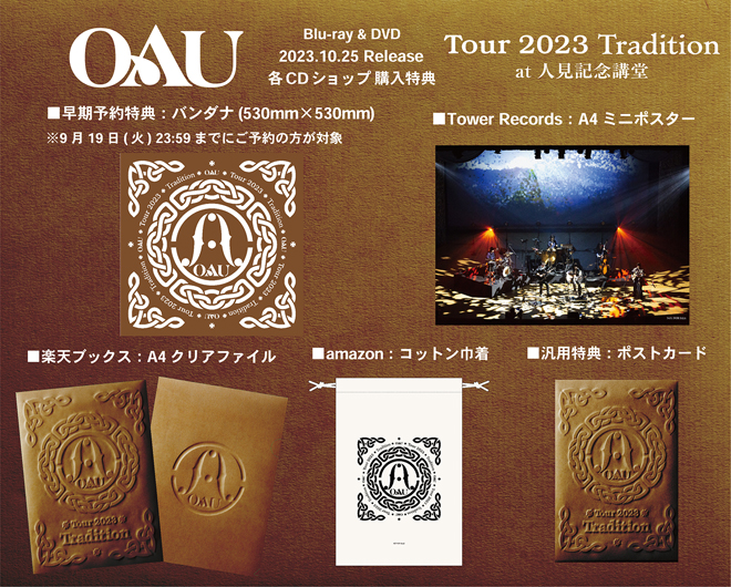 OAUが2023年10月25日にリリースするライブBD/DVD『Tour 2023 Tradition at 人見記念講堂』のダイジェストトレイラーが公開された。