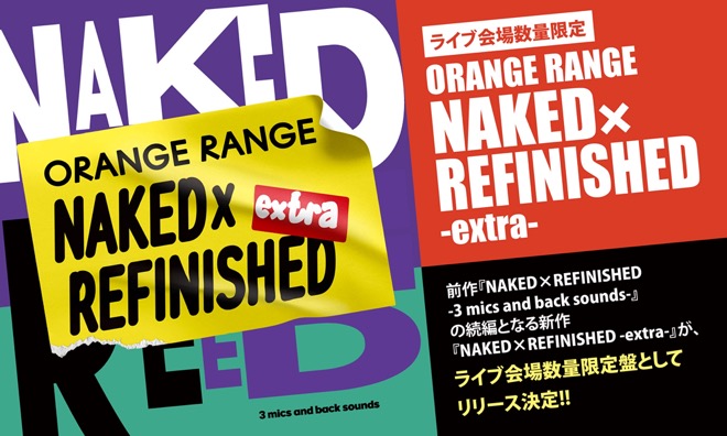 ORANGE RANGEが前作『NAKED×REFINISHED -3 mics and back sounds-』(2020年2⽉発表)の続編となる新作『NAKED×REFINISHED -extra-』をライブ会場数量限定盤としてリリースすることが決定した。