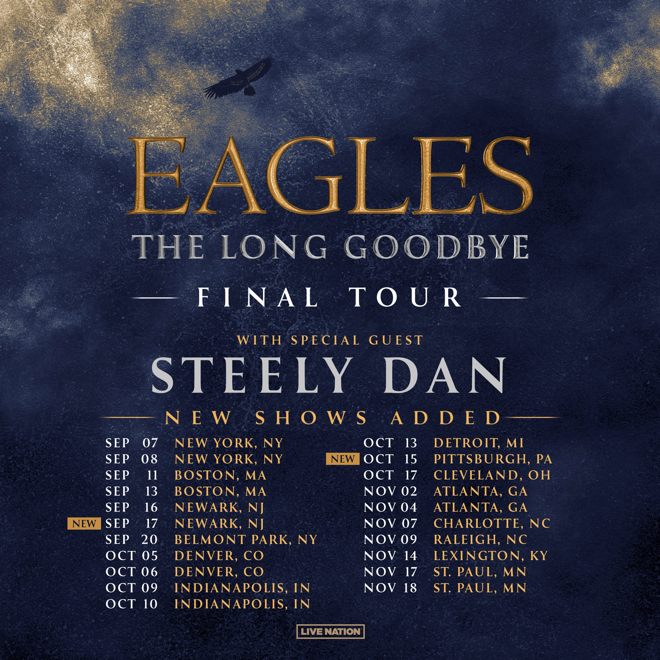 イーグルスは7月初め、「イーグルスは、52年間におよぶ奇跡的なオデッセイを続けてきた。世界中の人々の前でパフォーマンスし、痛ましい喪失、様々な変動、挫折に直面しながらも、この音楽を生かし続けてきた」「僕らの旅は、夢見ていた以上に長くなった。でも、全てのものには終わりがある。僕らがこの輪を閉じるときがきた」「これは僕らのスワン・ソング(最後の舞台)だ。だが、この音楽は永らえる」と、最後のツアーの開催を発表した。