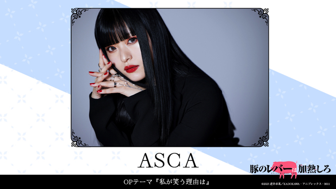 『豚のレバーは加熱しろ』アニメ化おめでとうございます。この度OPテーマを担当させていただくASCAです。この作品で豚とジェスの関係性を見つめながら、人生にはたった一回の素晴らしい出会いがあれば生きていけるのだな、と思いました。「私が笑う理由は」は、誰かの為だけではなく、自分の道を歩いていく為のおまじないソングです。二人の大冒険、10月から一緒に見守っていきましょう!