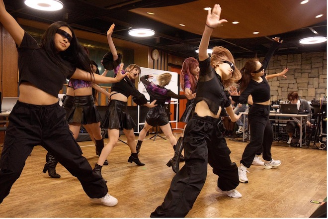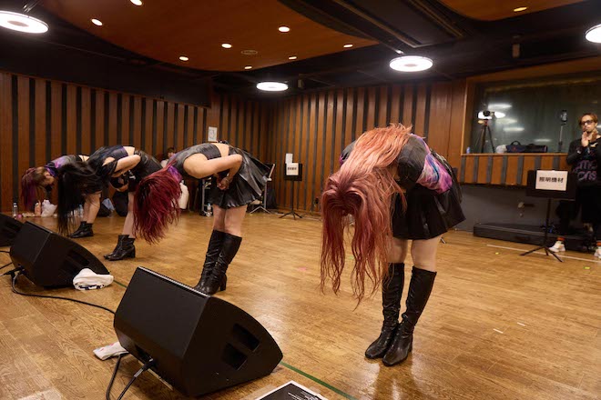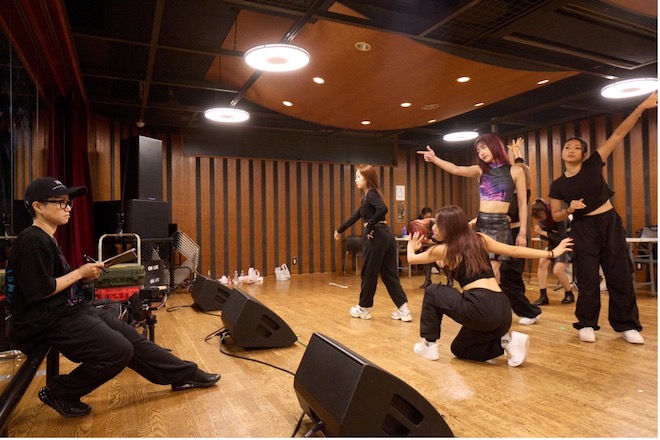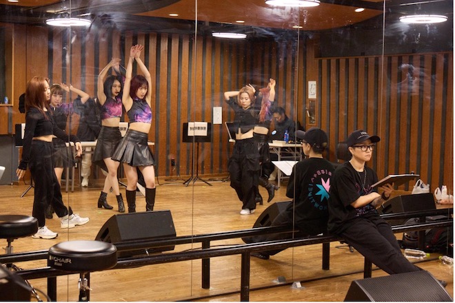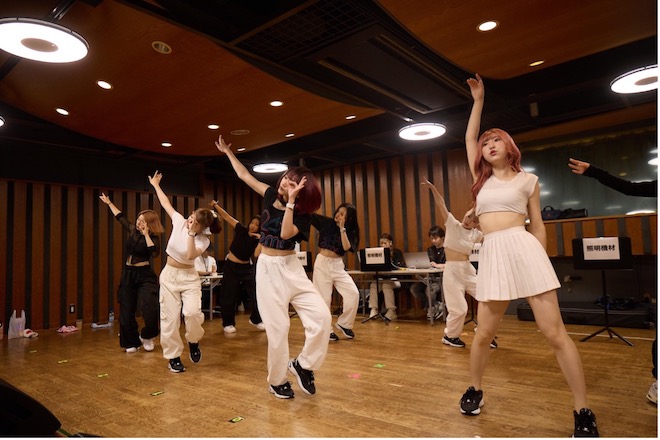 なので、計3曲は特に空き時間やフライヤー配りから配信の間などにお互いに確認し、鏡や窓の反射を利用して、どんな場所でも合わせる。そうして5人のパフォーマンスとして精度をあげていきました。