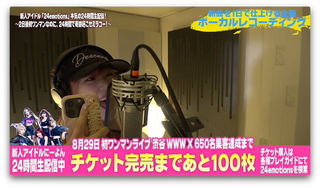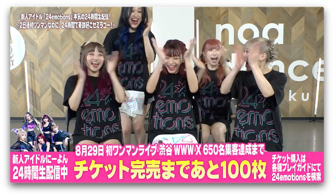 私たちは、初ワンマンライブに向けてチケットをソールドアウトにする為に、様々な事をしてきましたが、それでもどうしても売り切れにはならなくて、ラストスパートとして、ライブの3日前の8月26日の20時から8月27日の20時まで「24時間生配信」という企画にチャレンジしました。