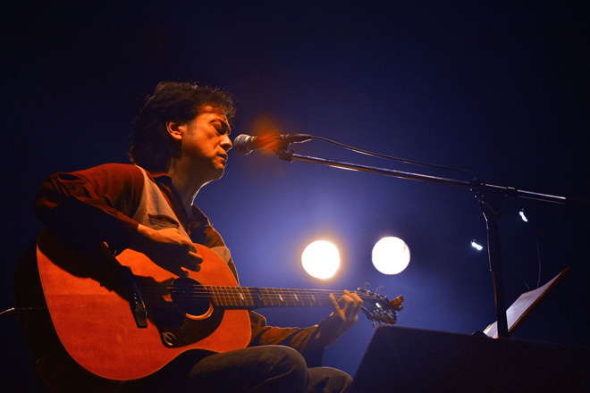そして2014年にバンド編成でリリースしたセカンドアルバム『十字路のギター』に収録されていた「STAGGER」へと続く。2曲を歌い終わりMCに入ると、苣木は終始笑顔で、「いい感じだなぁ」を連発。自分のギターが、自分の声がしっかりと観客の心に染み渡っていったことをこの2曲で確信したのだろう。そしてこんな言葉を発した。「モッズのようには盛り上がらないから。だけど、帰る頃には来てよかったなぁと、思えるようになるから」と。