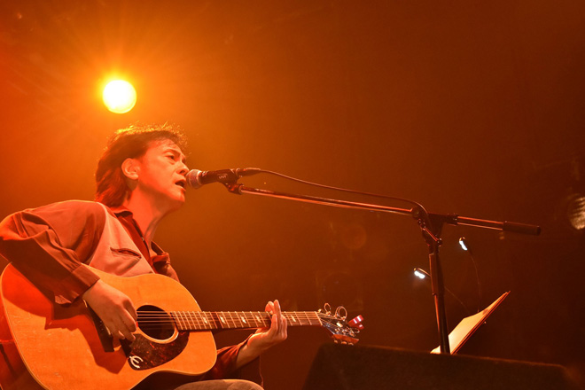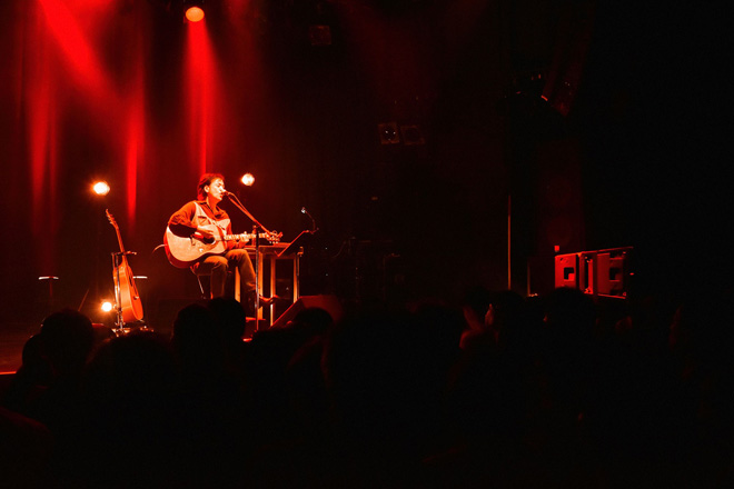 オープニングナンバーは、2021年にリリースされたマキシシングル『VOICE』の1曲目に収録された「可愛いジニー」だった。アコースティクギターの乾いた音色がフロアを包み込むと、観客は息をのむように、その音色に耳を傾ける。