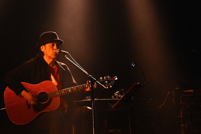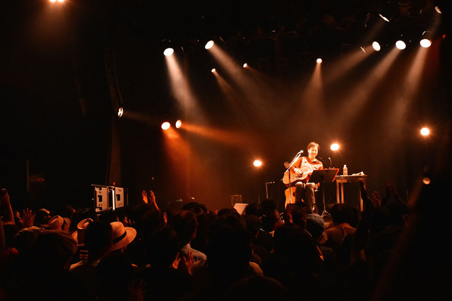 椅子ありのフロアを埋め尽くしたファンを眼前に、定刻の17時、はにかんだ笑顔で苣木が登場する。観客のリアクションも、ロックンロールの衝動を剥き出しにしたTHE MODSの時とは大きく異なる。それは、苣木の人間性が醸し出すあたたかなオーラが会場全体を包み込んでいるようにも感じるし、ファンもTHE MODSとは異なるDUDE TONEの世界観を熟知しているようにも感じる。