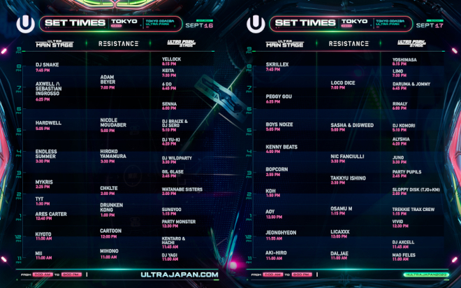 9月16日と17日に東京・お台場のTOKYO ODAIBA ULTRA PARKで開催される<ULTRA JAPAN 2023>のタイムテーブルが発表された。