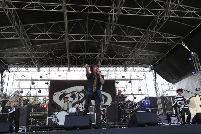 イントロからギターリフが印象的な「90’S TOKYO BOYS」でOKAMOTO’Sが秋田に降り立つ。「我々14年目なんですけど、今後ないでしょうね、藤あや子さんの次というのは」(ハマオカモト)。オカモトショウがオーディエンスを煽ると「SEXT BODY」へ。強い日差しに照らされた会場が〈あーい? あーい!〉のコール&レスポンスでひとつになる。最後は、良いことも悪いことも含めてその全てが美しいという想いを込めた「Beautiful Days」のメッセージが会場に響いた。