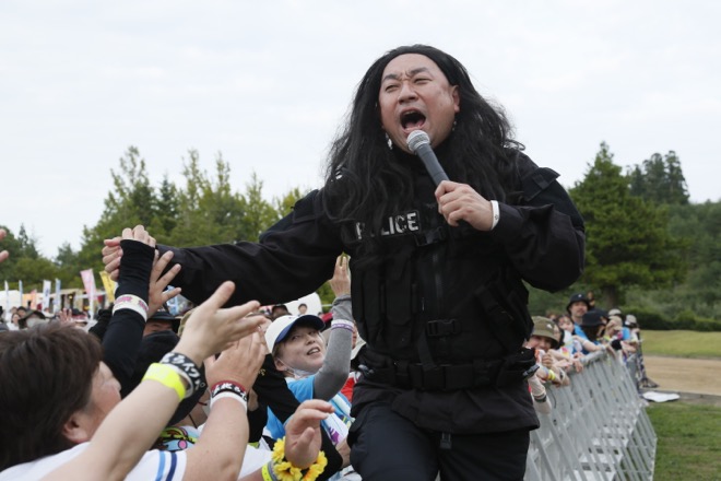 この日の鳥海ステージには、お見送り芸人しんいち、もも、レイザーラモンRGの3組が登場。ギターを使った毒のある漫談、互いを「◯◯顔」と言い合う漫才、そしてRGがあるキャラに扮してクイーンの「ボヘミアン・ラプソディー」に乗せて放った「秋田あるある」は……秋田はTBS系列の局がないからこのキャラ(ドラマ『VIVANT』のチンギス)やっててもわからない。