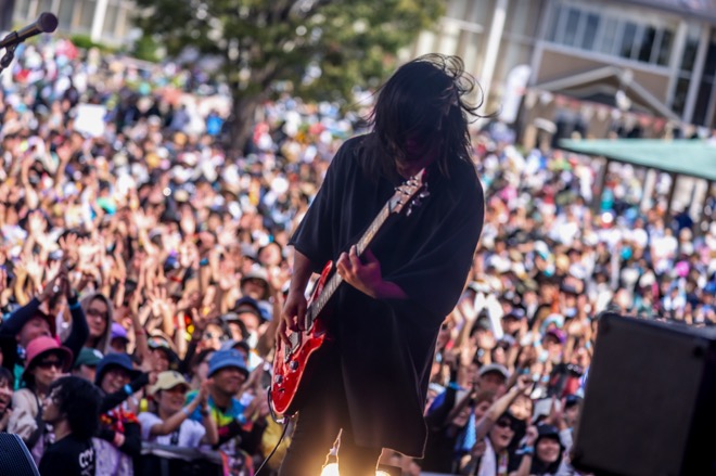 突っ走る2ビートを跳ね返さんばかりの勢いで大きなシンガロングも生まれた「無線LANばり便利」、こやまたくやが促した手拍子でより会場がひとつになった「癒着☆NIGHT」と続けていき、ここぞというタイミングで投下された「ちらばれ!サマーピーポー」はとてつもない求心力を見せつける。浮かれていいんだ、楽しんだもん勝ちなんだと呼びかけているようでもあり、はしゃぎまくる観客の姿もとても印象的だった。