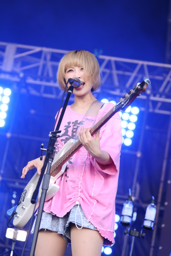 野外にも関わらず、空間が熱気で満たされるライヴハウス状態を作り上げ、最後は残り時間を気にしながら猛ダッシュで「ハッピーウェディング前ソング」をプレイ。焦るメンバー、どんどん速くなる曲。でも、そのノリとしっかり噛み合う観客。その上り詰め方も最高だった。