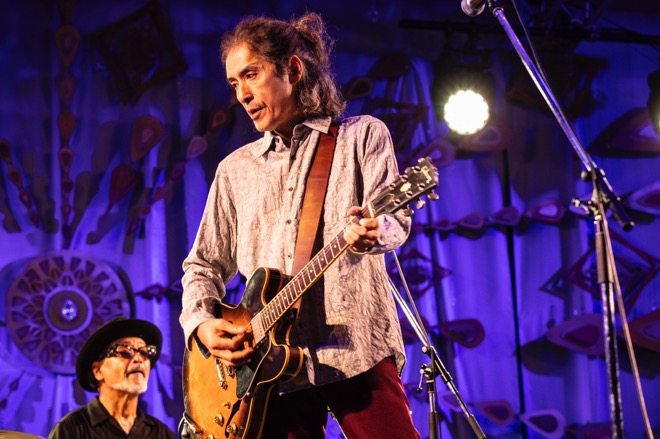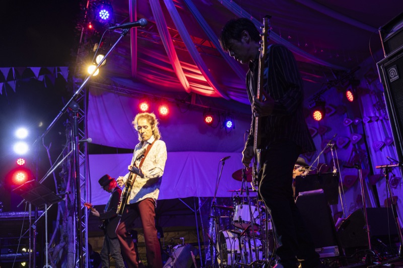 「渦」はブルージーなロックンロール・バラード。下山が歌う「So Long」は花田と下山がリズムの取り方が違うコードストロークを巧みに重ねるネオサイケなフォークロック・ナンバー。後者はグリッサンドからベンドやスウィープを使い分け、サイケなトーンや泣きのフレーズを閃かせる下山のギターソロが素晴らしかった。