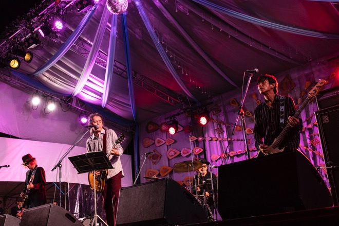 花田がボソッと自分抜きのメンバー紹介をしてからアンコールに演奏したのは、THE ROOSTERSが1980年にリリースしたセルフタイトルのデビューアルバムに収録されていた「DO THE BOOGIE」。福岡の先輩バンド、サンハウスの柴山俊之が作詞、鮎川誠が作曲したヒプノティックなこの高速ブギには、もしかしたら2023年1月29日に惜しまれつつこの世を去った鮎川に対する追悼の意味が込められていたのかもしれない。この曲をアンコールに選んだ真意はさておき、誰もがゴキゲンなビートに腰を揺らしたのだった。