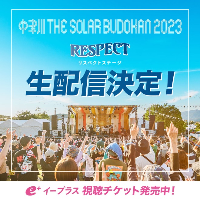 3ステージ制で実施される2023年の<中津川ソーラー>より、RESPECT STAGEの模様が2日間にわたって生配信されることが決定した。視聴チケットはイープラスにて、各日3,000円(税込)。なお、一部アーティストを除いてアーカイブ配信も行われるとのこと。