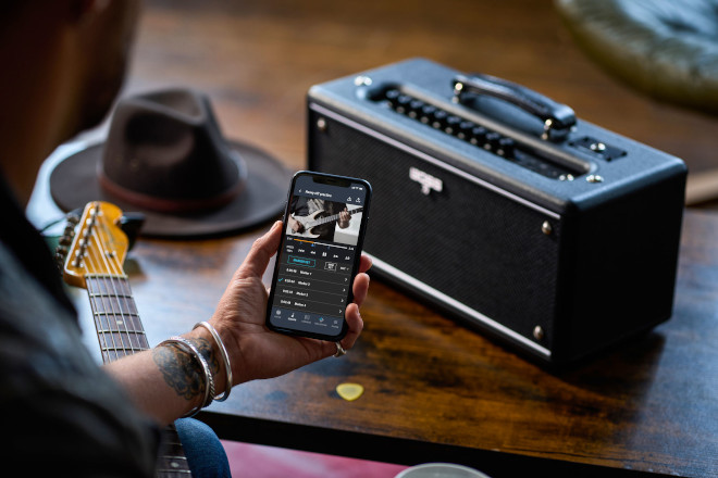 『KATANA-AIR EX』の専用アプリである「BOSS TONE STUDIO for KATANA-AIR」(iOS/Android対応)には、音色のエディットに加え、練習に役立つ多くの機能を搭載。YouTubeのソングリストの作成や動画のリピート再生ポイントの指定、再生速度の変更など設定することができる。また、モバイル端末とBluetooth接続を行うことで、より緻密な音色のエディットを行うことができる。オンライン・プラットホームの「BOSS TONE EXCHANGE」を経由して、ユーザー同士で音色の共有を行うこともできる。