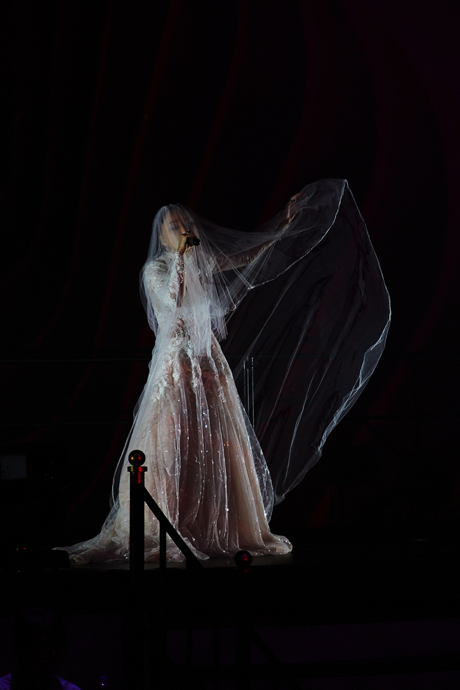 ウェディングドレス風の衣装に着替えた後は、3拍子のジャズナンバー「Love Addict」で洗練された音楽空間を生み出す。楽曲の世界観やテーマに合わせ、バレリーナ、ダンサー、映像を交えたステージングも中島美嘉のライブの大きな魅力だ。