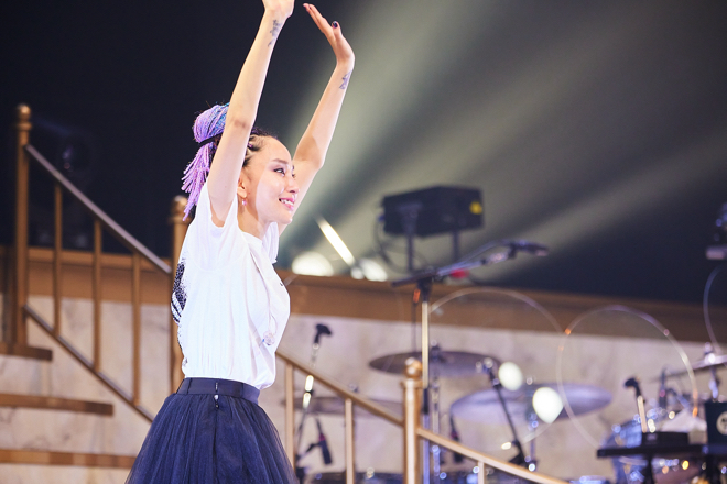 「かわいい!」と声を掛けるファンに対して、「知ってる」と笑顔で返すいつも通りのやりとりから、MCコーナー。観客と直接会話を交わすのが彼女のスタイルなのだが、こういう親密なムードや飾らない佇まいもまた、ファンを惹きつける理由なのだと思う。