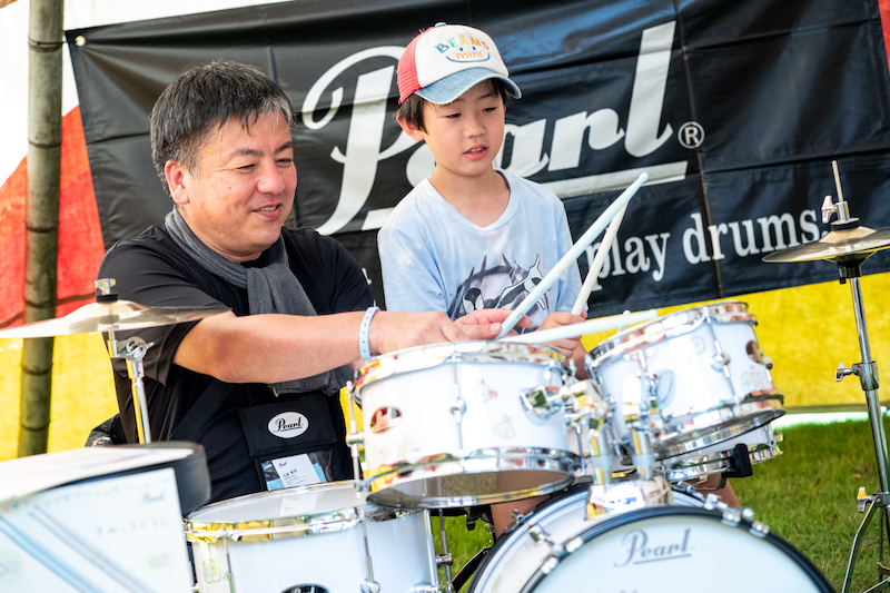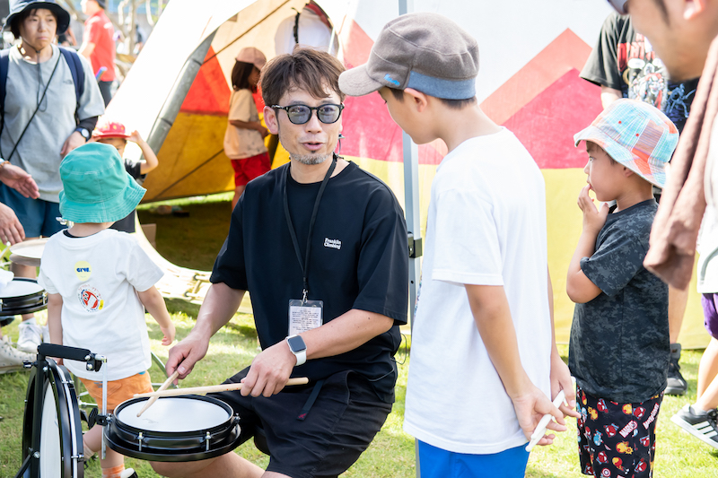 【photo gallery】<中津川ソーラー>こどもたちが遊んで学ぶ、うじきつよし国王の「こどもソーラーブドウカン」も盛況。伊地知潔のドラム教室なども
