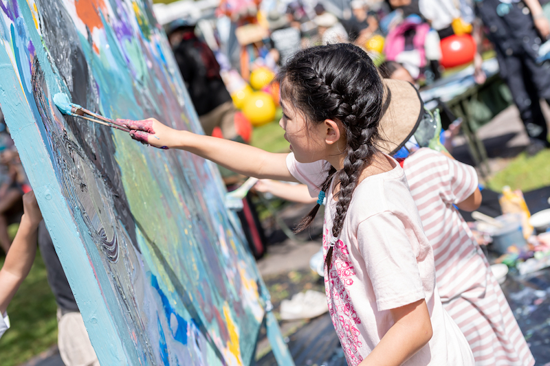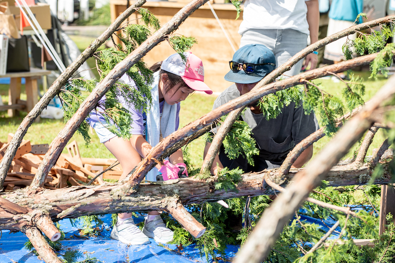 木を切る・画を描く、何をやっても自由。こども自身が作りたいアート作品を画家 近藤康平と木こりの熊さんが一緒に制作。出来上がった作品は、こどもソーラーブドウカンのメインステージ「太陽のステージ」の装飾として取り付けられていく。2日間でどんなステージが出来るのか? 誰もわからない。進化する「太陽のステージ」は必見。